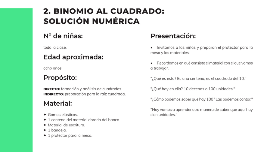 Unidad 3: Binomio al cuadrado: Solución algebraica