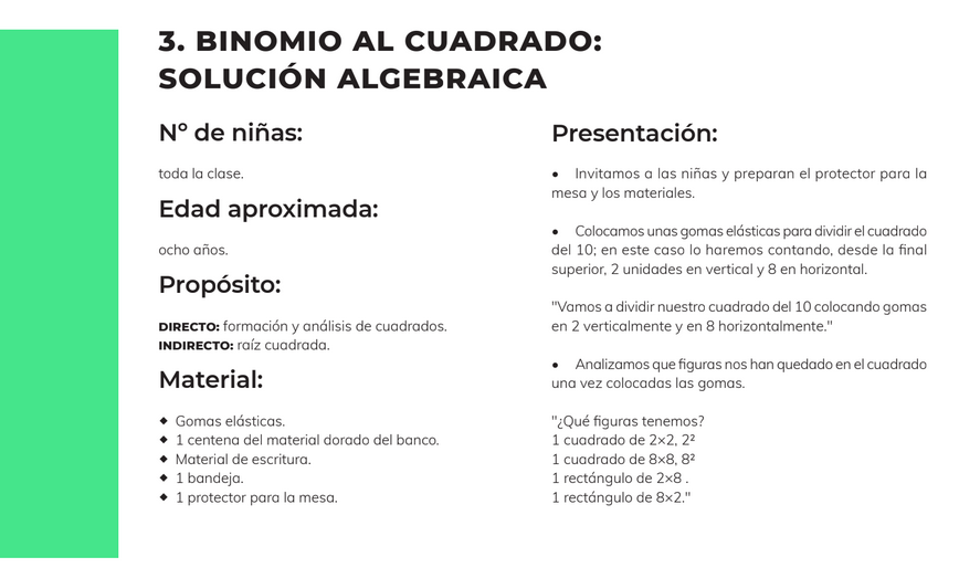Unidad 3: Binomio al cuadrado: Solución algebraica