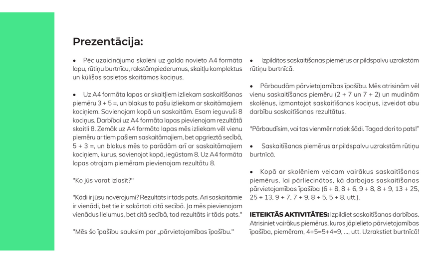 Nodaļa 3: IEVADS SASKAITĪŠANĀ. SASKAITĀMOS MAINOT VIETĀM SUMMA NEMAINĀS.