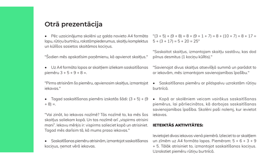 Nodaļa 3: IEVADS SASKAITĪŠANĀ. SASKAITĀMOS MAINOT VIETĀM SUMMA NEMAINĀS.